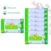 Chất liệu mềm mại, an toàn: Khăn ướt được làm từ vải không dệt cao cấp, mềm mại, dai và không gây xơ bông. Sản phẩm không chứa cồn, paraben