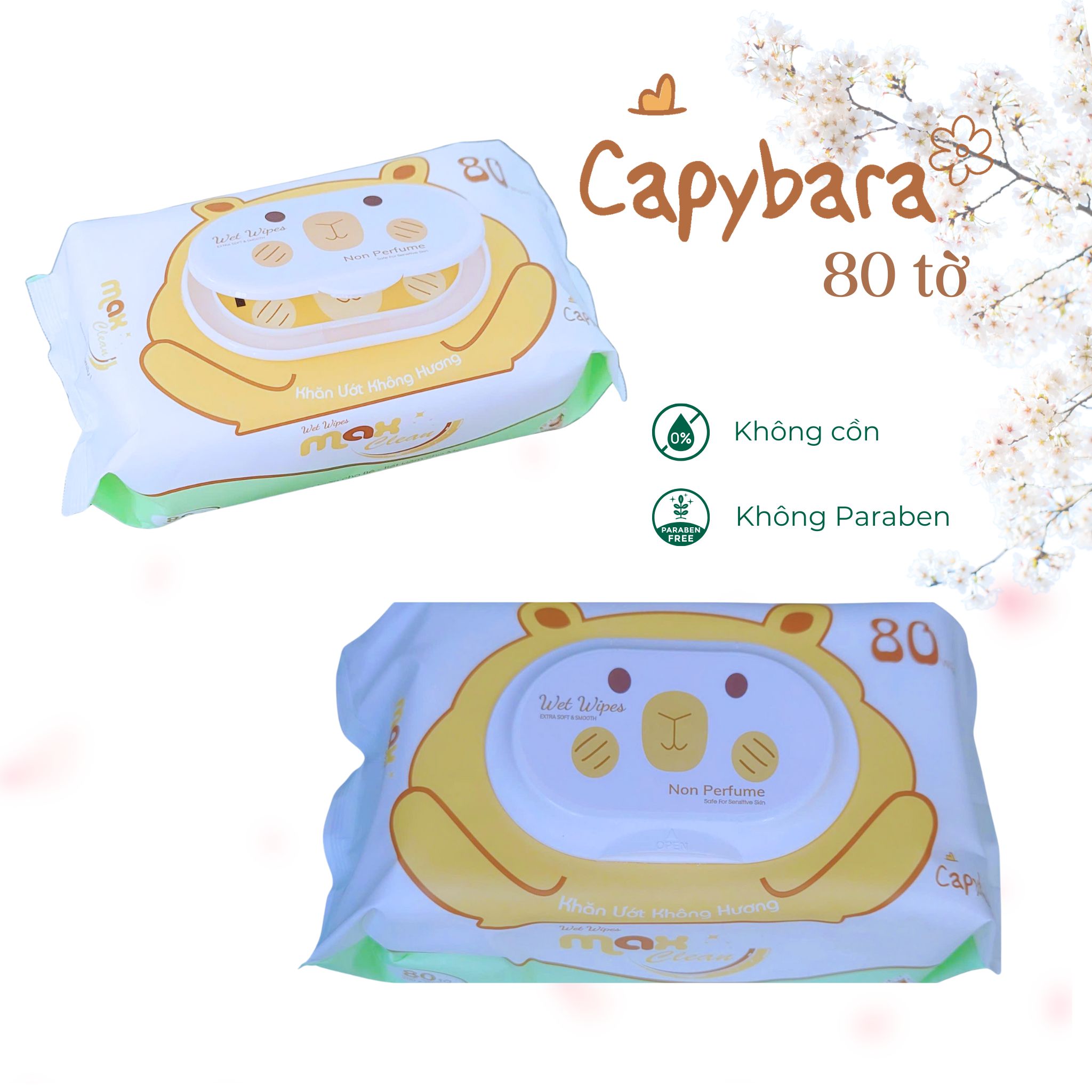 Khăn Ướt 80 Tờ Không Hương - Bao Bì Capybara Dễ Thương